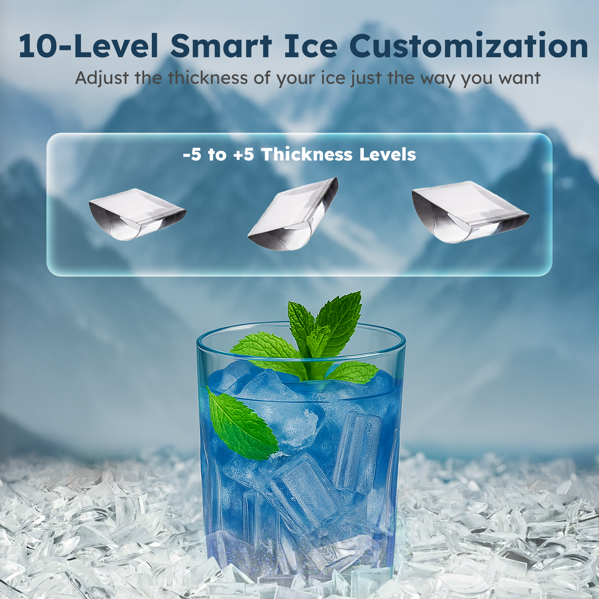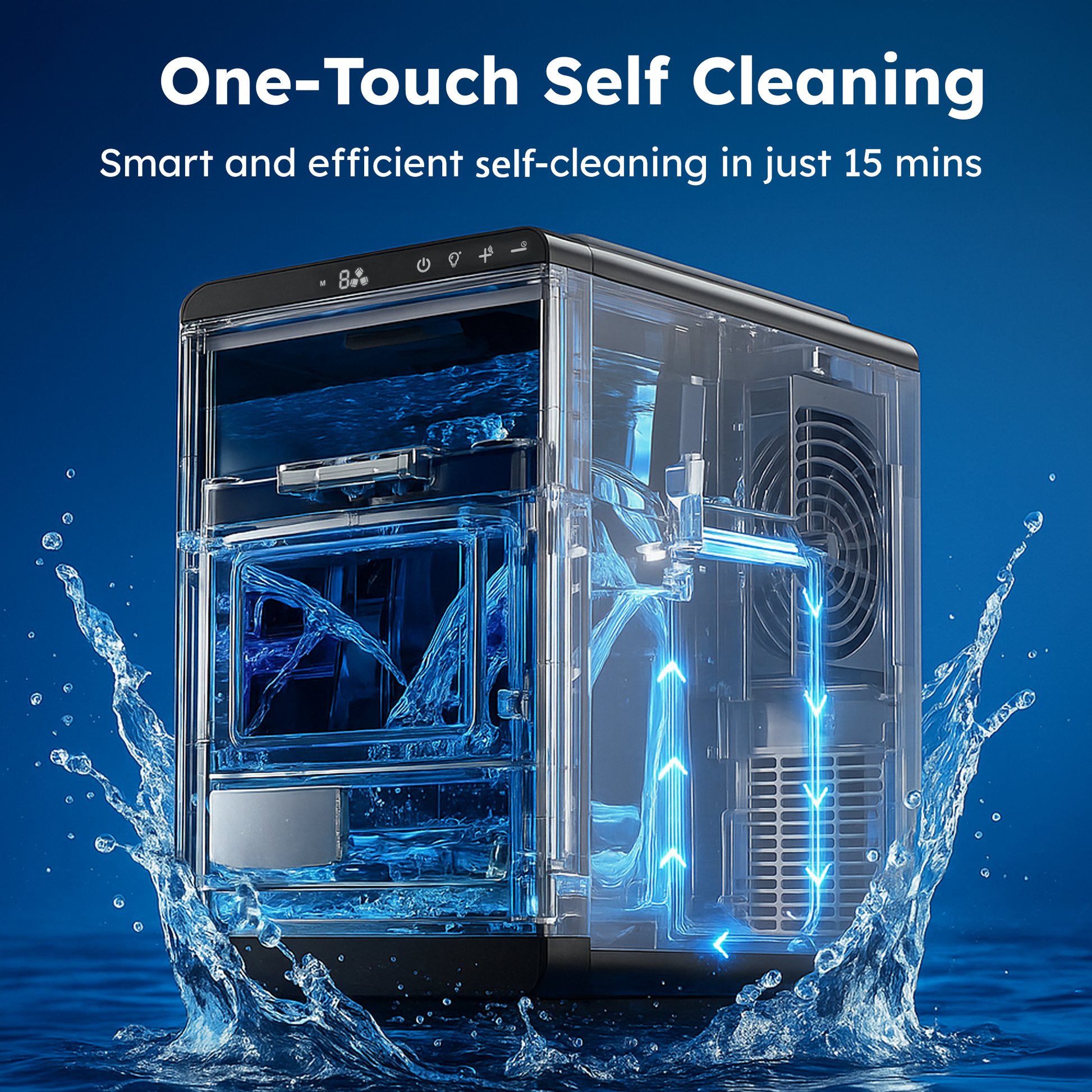 Self-Cleaning Function: One-touch cleaning system for hygiene and easy maintenance — enjoy fresh ice every time.