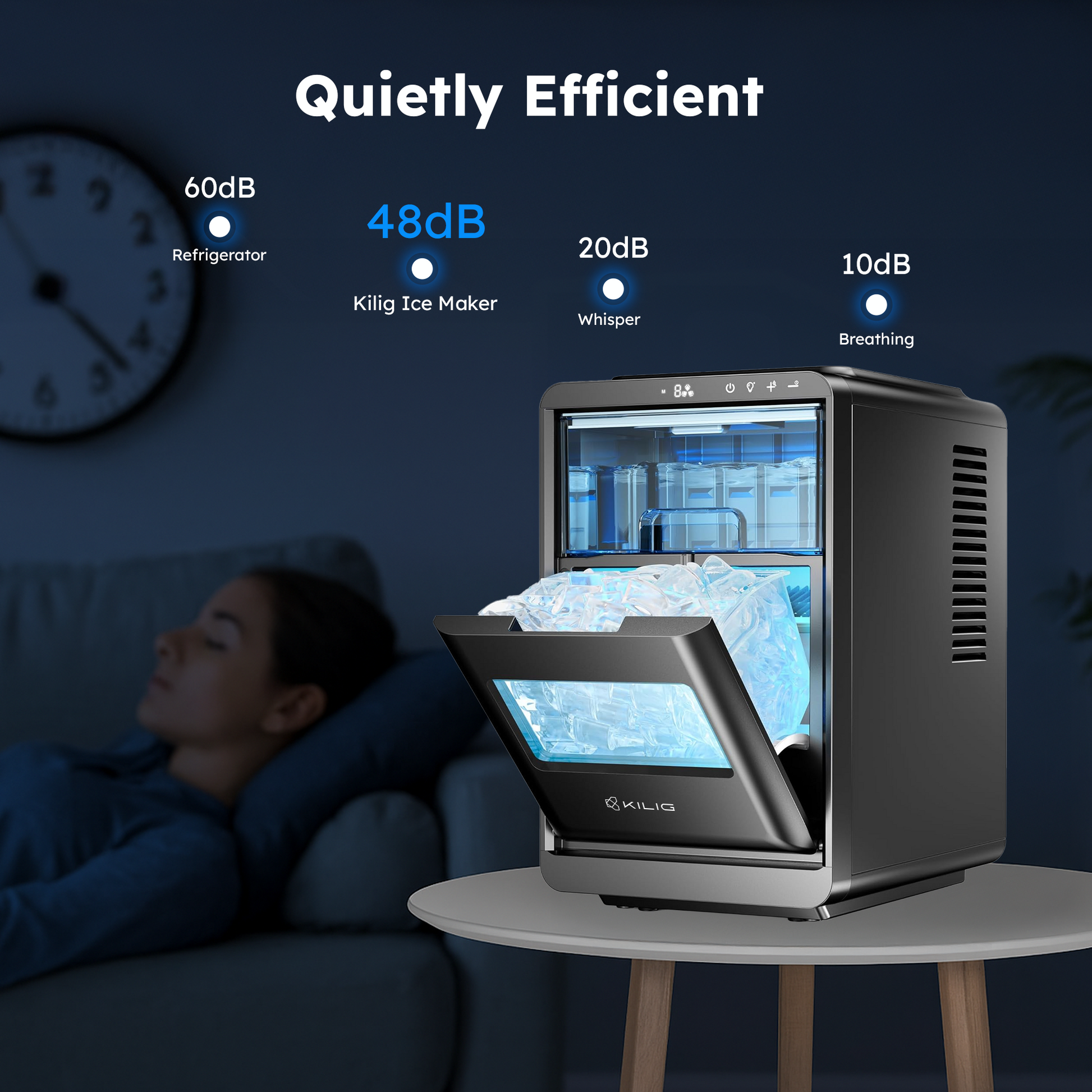 Powered by an energy-efficient 205 W motor using eco-friendly R290 refrigerant, this ice maker runs quietly and effectively, giving you a steady supply of crystal-clear ice for cocktails, mocktails, smoothies, and cold coffee anytime you need it.