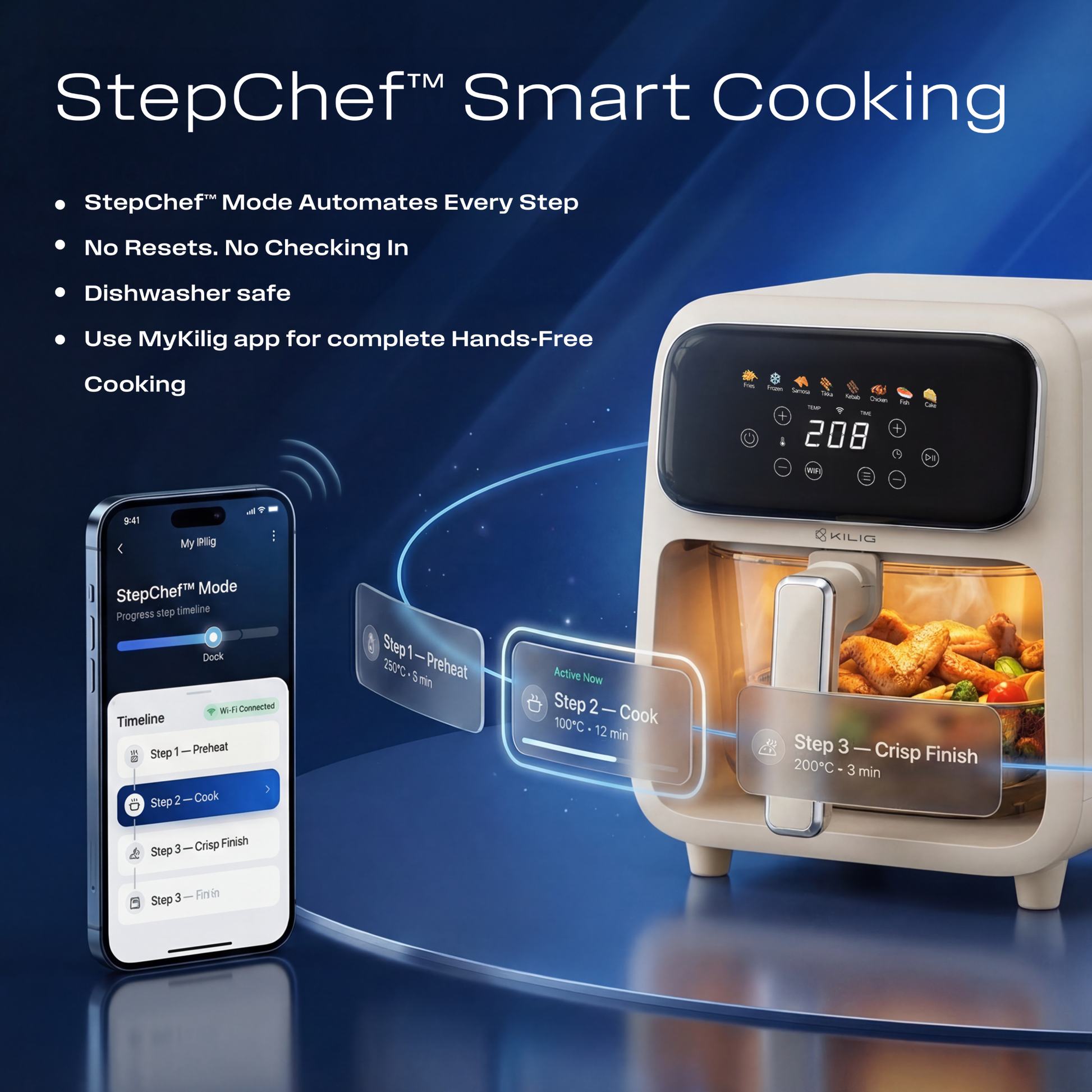 Step Chef™ Total Hands-Free Cooking (Kilig Exclusive): Step Chef™ automates every stage of your recipe— time and temperature changes included, while the MyKilig app lets you start, schedule, pause, and monitor remotely with real-time alerts for a truly hands-free cooking experience.